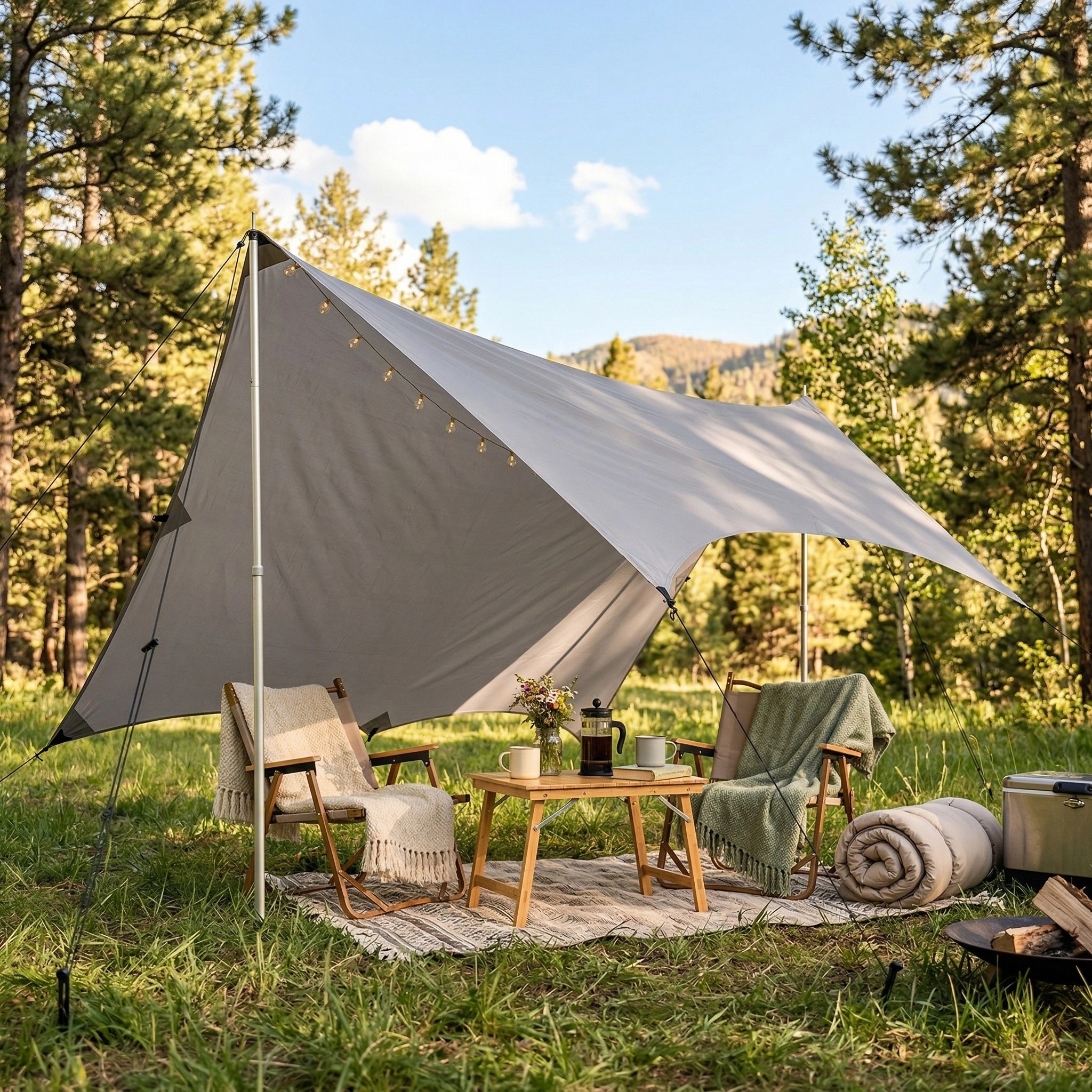 Lightweight yet tough, it creates the perfect shelter for your campsite, blocking sun and rain while elevating your glamping setup.